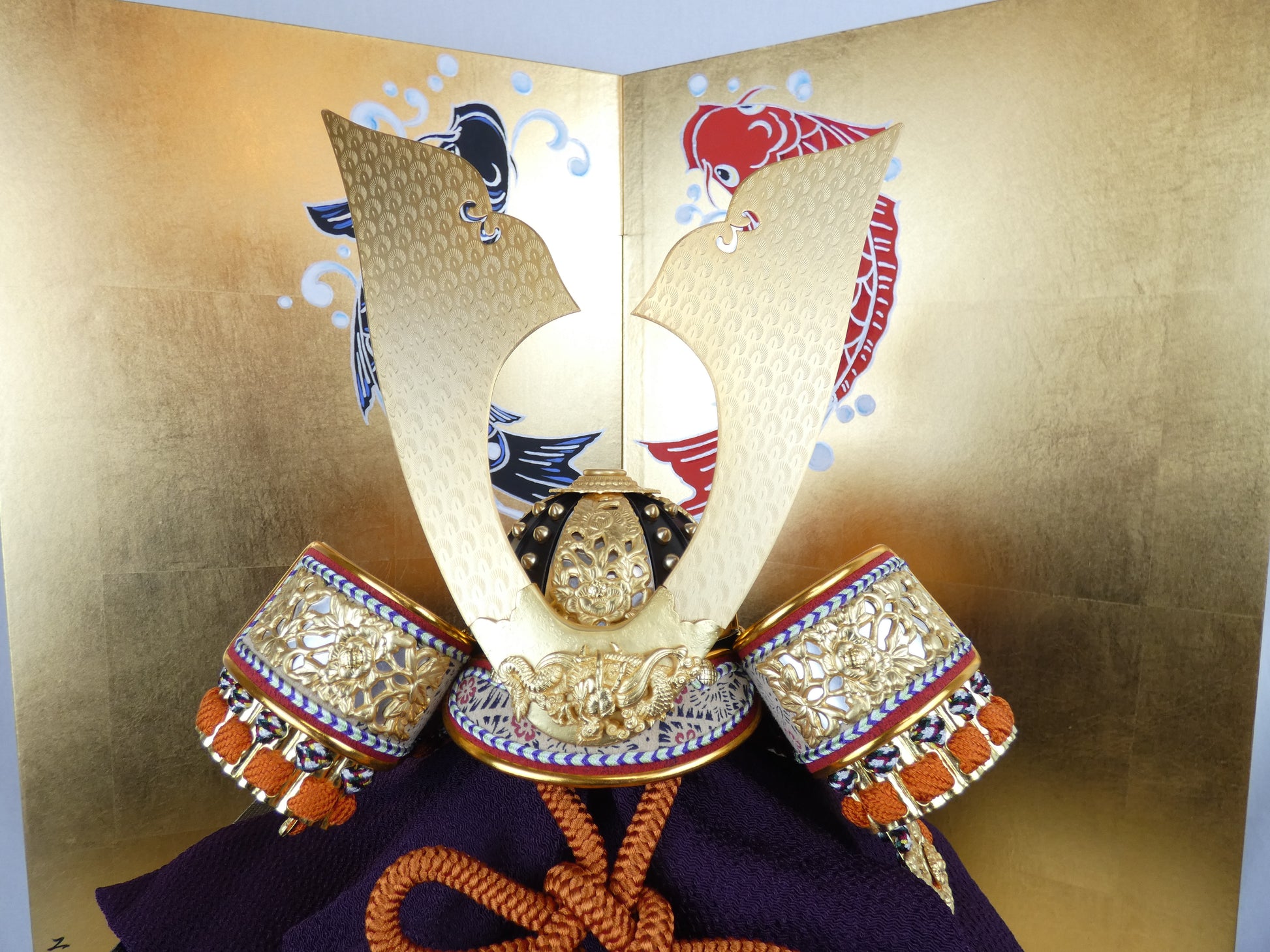力強く逞しい二匹の鯉が兜を引き立てます。